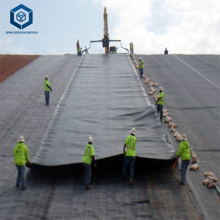 BPM Geomembrane is designed and made of high quality polyethylene resin with proportional carbon black antioxidant, anti-aging and UV-resistance materials which exhibit impermeable and ultraviolet resistance properties. Compared with traditional concrete and compacted clay, smooth geomembranes have proven to be more cost effective, safe and fast deployment. They are widely used for solid waste landfills, waste containment, aquaculture and water treatment system, etc